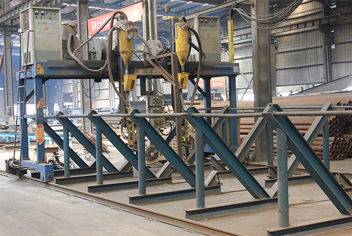 引進了國內專業的全自動管相貫線等,離子切割機、網架桿件雙自動焊接機、網架支托自動焊接設備、龍門埋弧焊及數控火焰切割機等優質生產設備